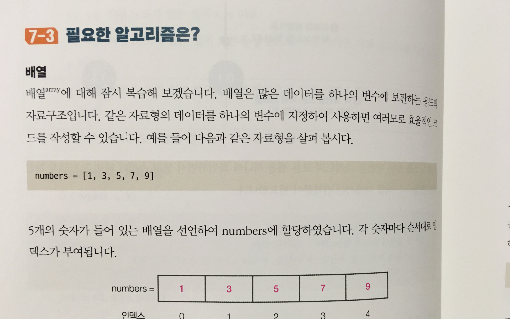 해당 장에서 다루고 있는 문제를 풀기위한 알고리즘에 대해 설명해 주는 부분은 개발자가 아니어도 읽어볼 가치가 있다고 생각되었습니다. 간단한 스크립트 정도는 다루기에 배열에 대해선 어느정도 알고는 있었는데 이것을 알고리즘이라 부르는 것은 이번에 처음 알았네요.(비개발자의 한계?)
